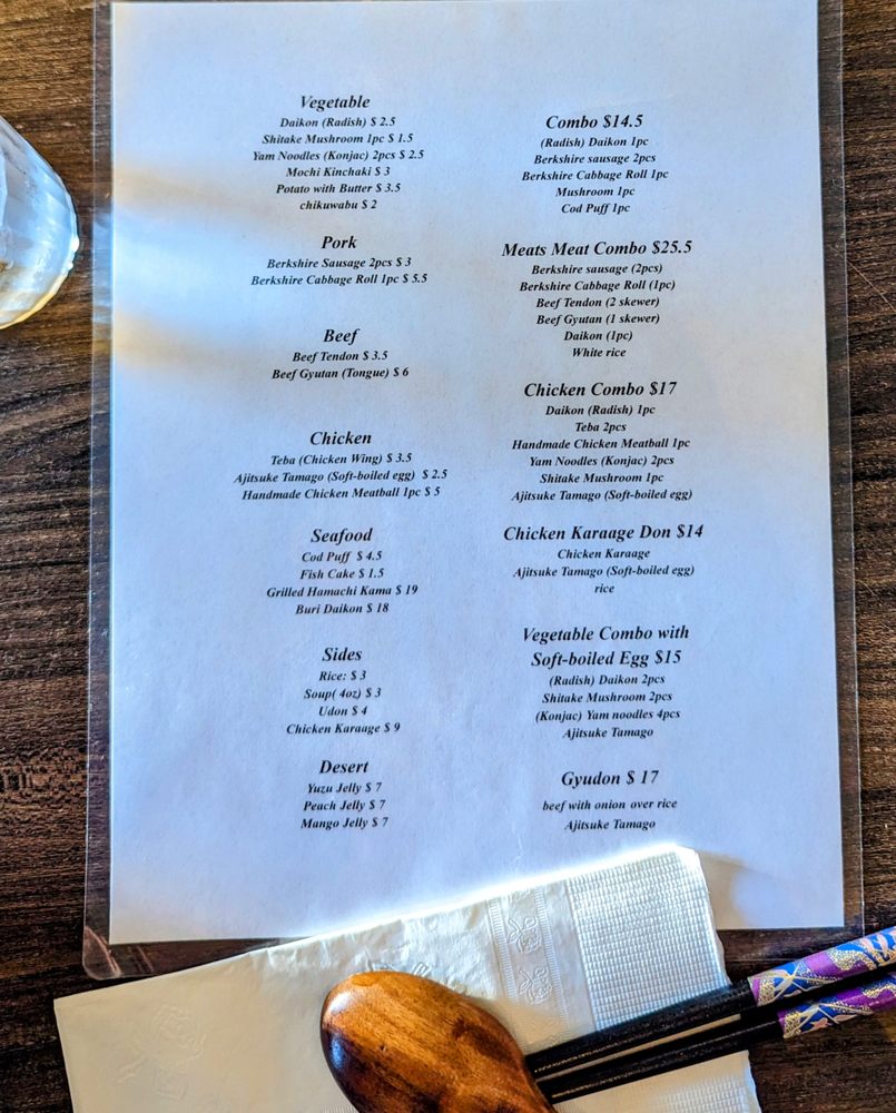 - Daikon Radish: Infused with rich dashi, this tender vegetable will transport your taste buds back to childhood memories for only $2.50.